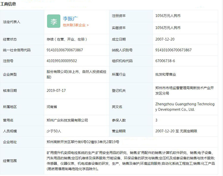 鄭州廣眾科技發(fā)展股份有限公司,正規(guī)生產(chǎn)企業(yè),公司詳細資料如下: