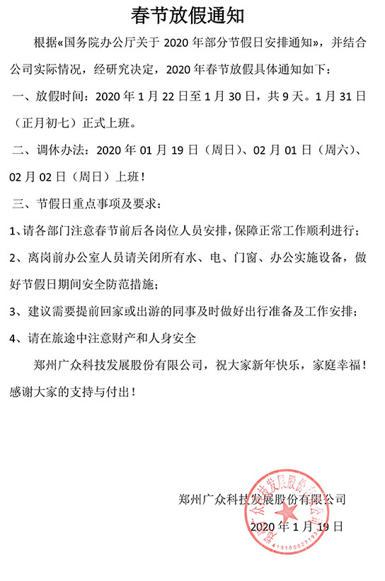 鄭州廣眾科技發(fā)展股份有限公司,祝大家新年快樂(lè),家庭幸福!感謝大家的支持與付出!