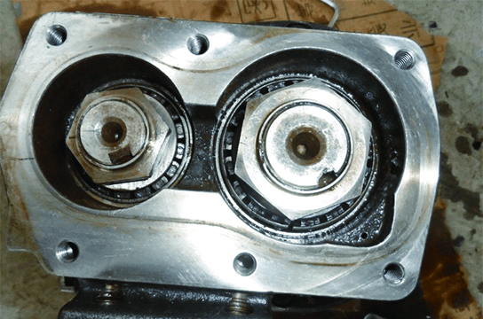 3 空壓機軸承老化,磨損嚴(yán)重,當(dāng)軸承磨損及主機配合間隙超過允許的極限量后,就可能發(fā)生嚴(yán)重后果,比如有1個毫米厚這么一塊鐵屑進(jìn)去,也可能就會卡死。所以在維護保養(yǎng)過程中要對軸承進(jìn)行檢測,如發(fā)現(xiàn)軸承晃動等異常情況,因及時與供應(yīng)商協(xié)調(diào)處理。