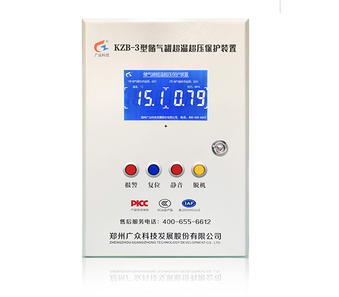 3,液晶壁掛機型。機器名稱:KZB-3型儲氣罐超溫超壓保護裝置。標(biāo)配針對4臺空壓機4臺儲氣罐使用,溫度壓力保護,可以根據(jù)客戶實際需要,進行多方位定制,例如多臺空壓機的溫度保護,一臺空壓機一臺儲氣罐的超溫超壓保護,多臺空壓機和儲氣罐的超溫超壓保護等。