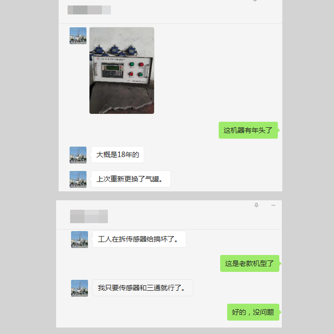 在選用廣眾牌儲(chǔ)氣罐超溫保護(hù)裝置的理由中,有一條非常重要的理由是:使用壽命長。看,下圖是購買公司好幾年的產(chǎn)品,仍然在正常使用中,因?yàn)樵诟鼡Q氣罐中弄壞了溫度傳感器和長三通,客戶聯(lián)系我們進(jìn)行購買: