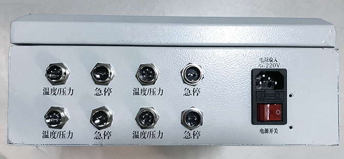 5,急??刂平涌跒槌i]干接點(diǎn)信號,當(dāng)監(jiān)測到溫度和壓力超過報警值時,該接點(diǎn)斷開,該裝置提供的四路控制輸出各路間均采取了電氣隔離,每路最大工作電流5A。各路接口均采用獨(dú)立的兩芯航空插頭輸出。