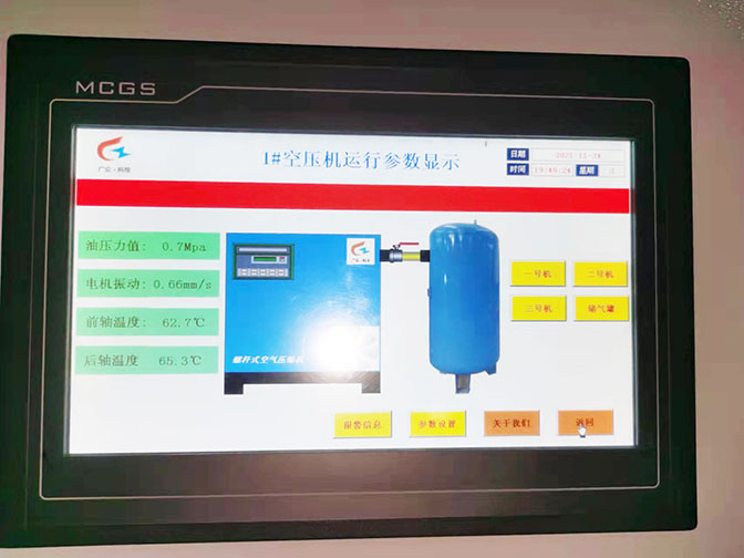 看空壓機運行參數(shù)顯示,以1號機為例: