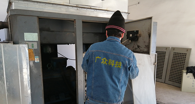 廣眾技術人員在寶平灣煤礦空壓機無人值守系統(tǒng)安裝現(xiàn)場