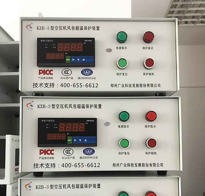型號已經(jīng)介紹過了,公司沿用了十六年的型號,標(biāo)配適用于一臺空壓機(jī)一臺儲氣罐,在監(jiān)測到儲氣罐溫度超過120℃時(shí)候,裝置發(fā)出報(bào)警聲,并控制空壓機(jī)急停開關(guān)斷開,空壓機(jī)停機(jī)。