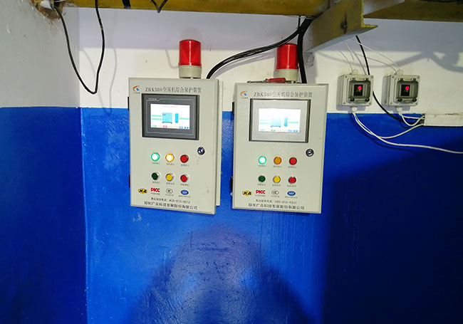 安裝的空壓機(jī)綜合保護(hù)裝置,包含空壓機(jī)斷油保護(hù)功能、電動(dòng)機(jī)振動(dòng)監(jiān)測功能。