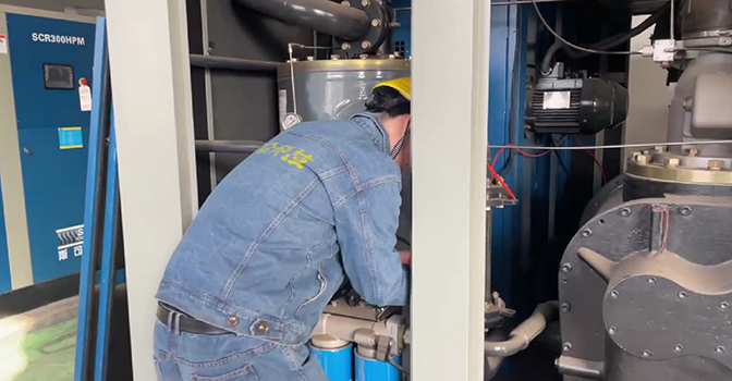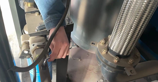 廣眾工程師現(xiàn)場安裝空壓機斷油保護裝置