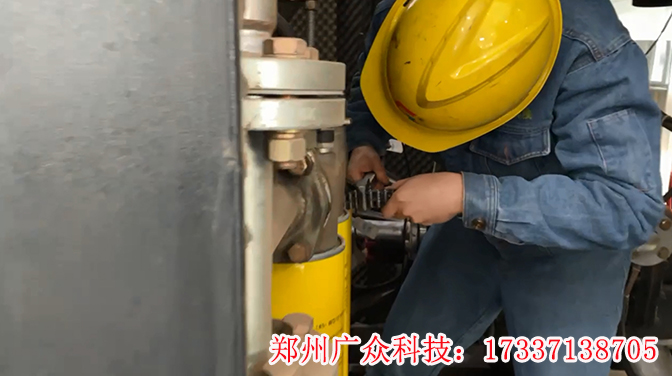 鄭州廣眾工程師在現(xiàn)場(chǎng)安裝空壓機(jī)斷油保護(hù)裝置