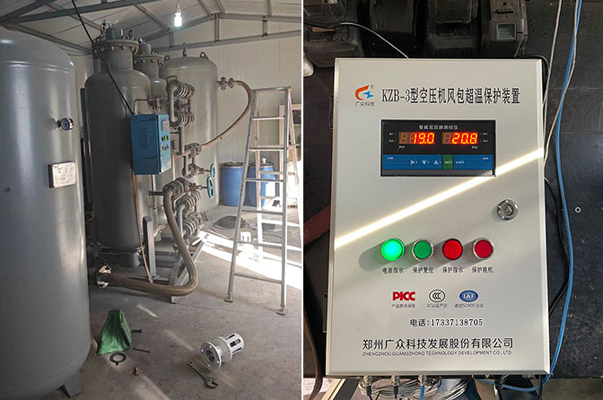 應(yīng)甘肅用戶要求,鄭州廣眾科技發(fā)展股份有限公司到現(xiàn)場進(jìn)行安裝空壓機風(fēng)包超溫保護(hù)裝置及井下隔爆型儲氣罐超溫保護(hù)裝置。