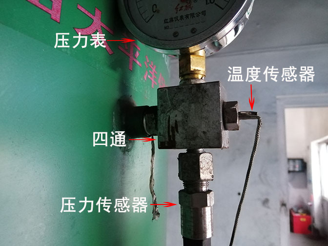 2, 把溫度傳感器和壓力傳感器安裝至四通相應(yīng)接口上(如上圖),連接前注意檢查密封面是否有密封圈和密封圈完好情況,以免造成漏氣。