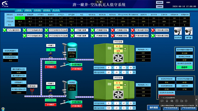 以上是唐一窿井空壓機(jī)無(wú)人值守系統(tǒng)部分顯示圖,想了解更多請(qǐng)聯(lián)系鄭州廣眾科技發(fā)展股份有限公司。