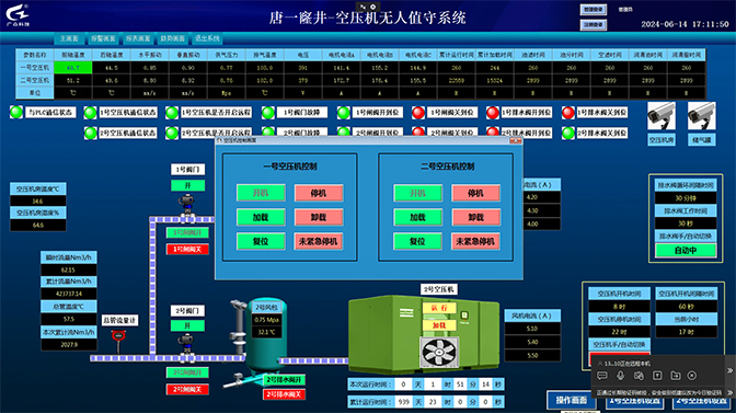 空壓機(jī)無(wú)人值守系統(tǒng)控制頁(yè)面