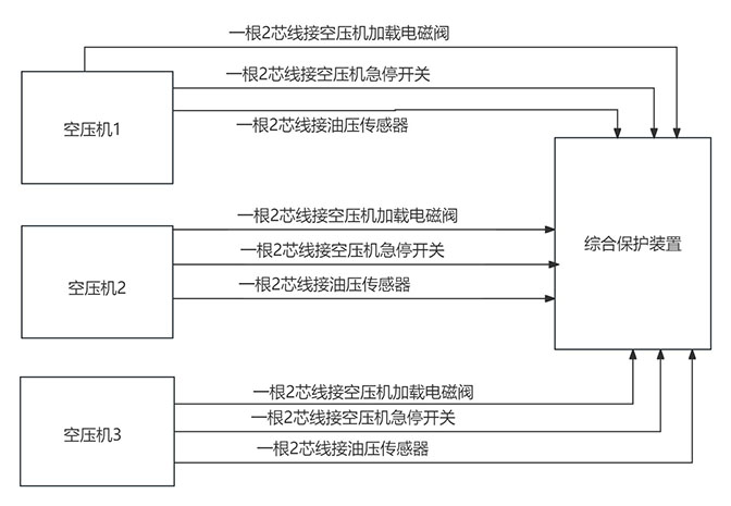 采用壓力變送器測量油路壓力,測到油壓超出設(shè)置值時候,裝置會發(fā)出報警并控制空壓機停機。