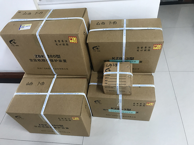 2月13日,鄭州廣眾科技生產(chǎn)的3臺(tái)ZBK380型空壓機(jī)斷油保護(hù)裝置和3臺(tái)KZB-3型空壓機(jī)風(fēng)包超溫保護(hù)裝置發(fā)往下梨園煤業(yè)。